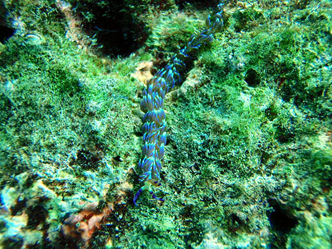 ウミウシもここでしか見られ無い種も多いです。ムカデミノウミウシ(写真5)