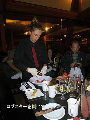 ナイアガラの町についたのは暗くなってから、今夜はロブスターです。お皿に大きなロブスターがドンと乗っています。