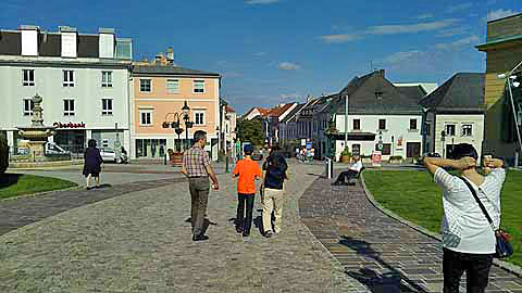 途中、ハイドンが眠るベルク教会を観てお祈りし、エステルハーズィ宮殿を左に見て、市街広場に。